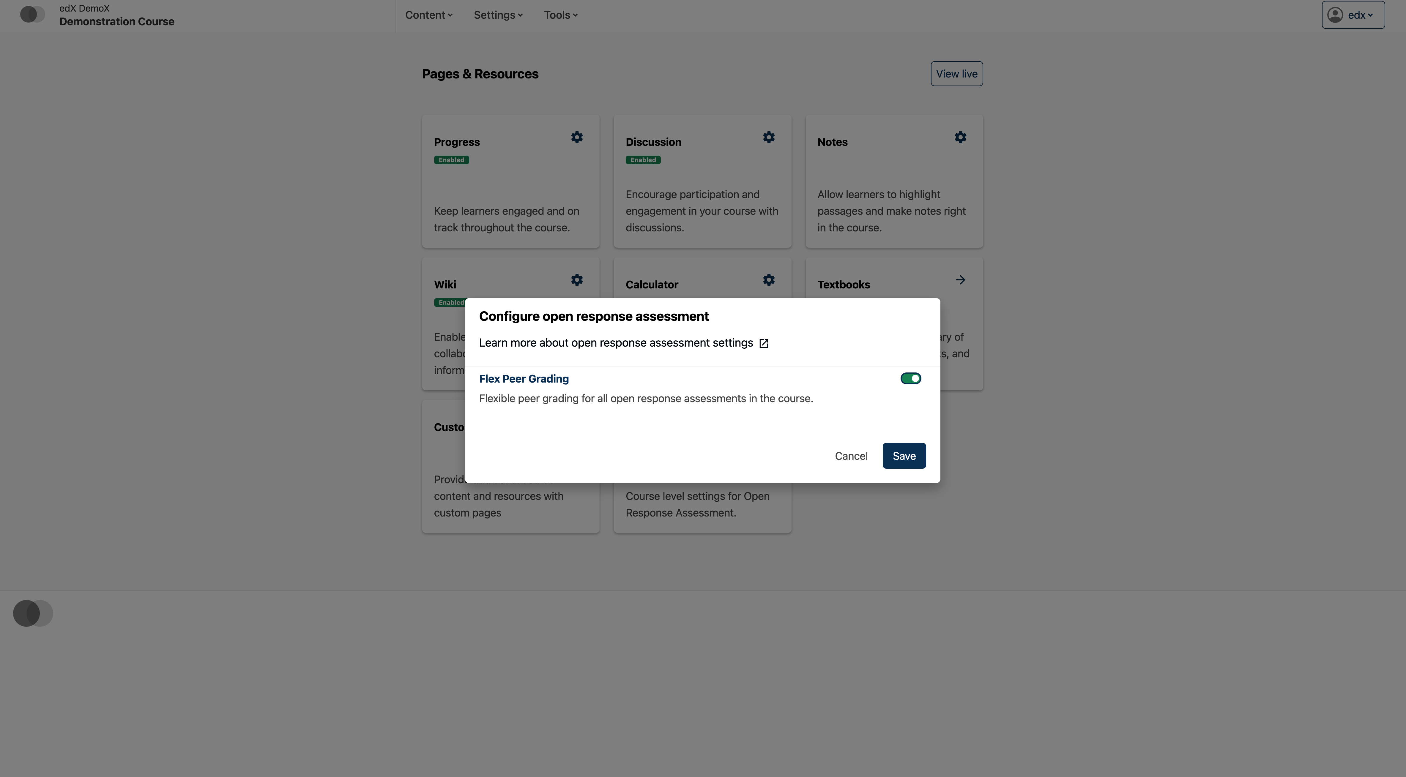 You can adjust this setting by going to Pages and Resources, and selecting “ORA Flexible Peer Grading”