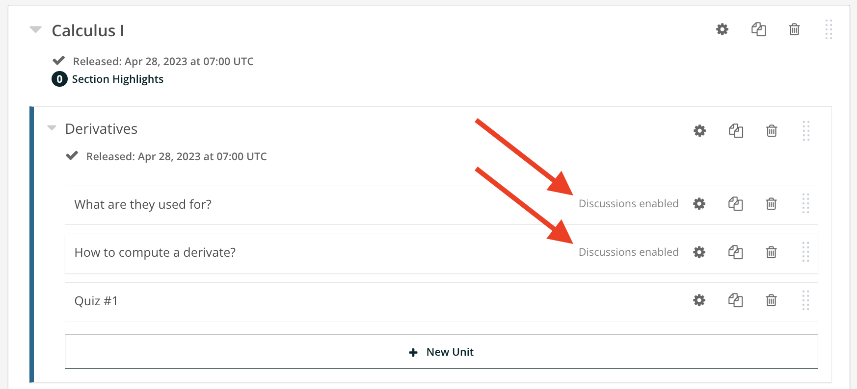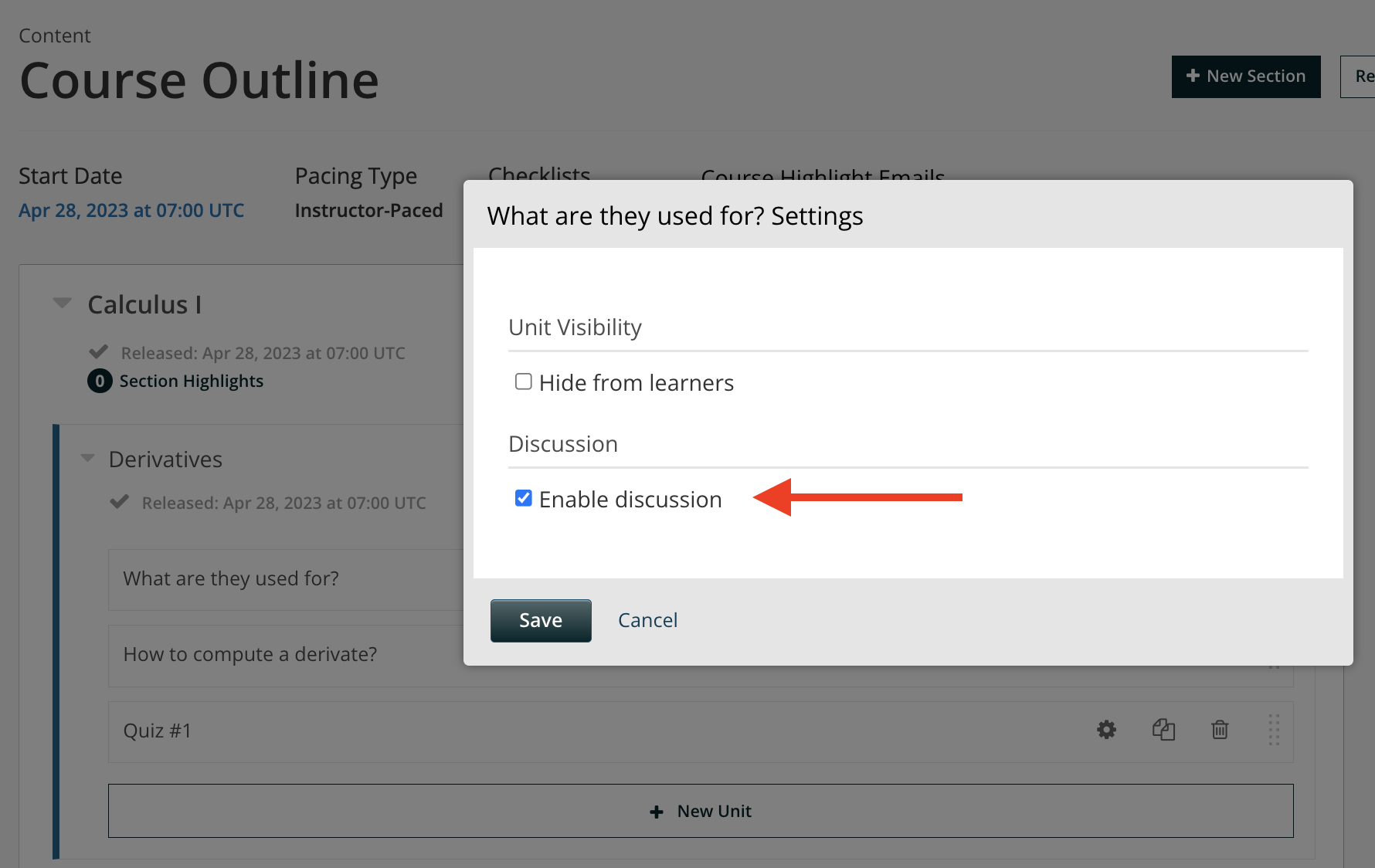 Enable Discussion on a Course Unit#