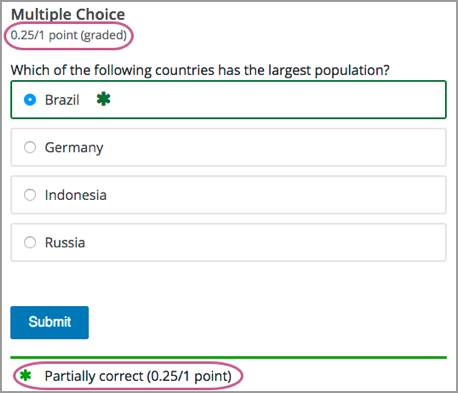 For an overview of partial credit in problems, see Awarding Partial Credit for a Problem.