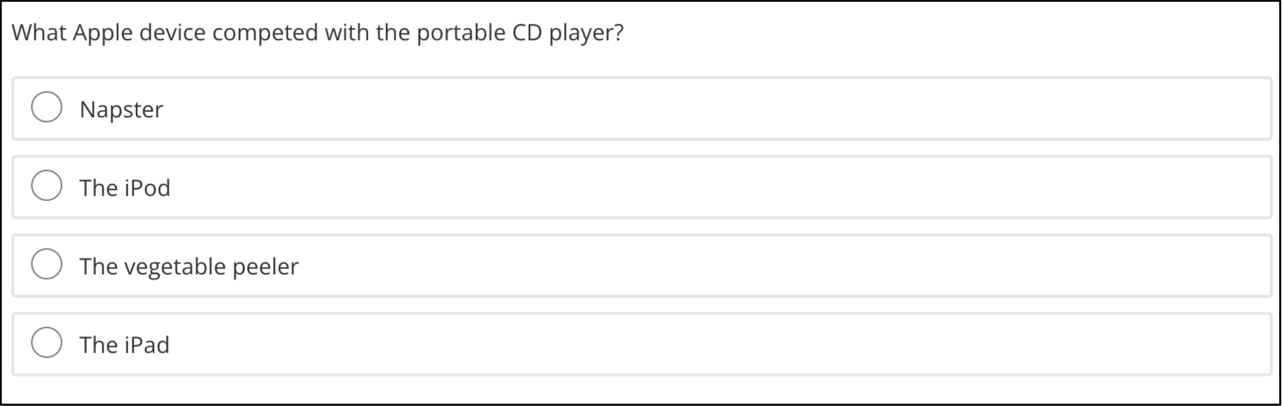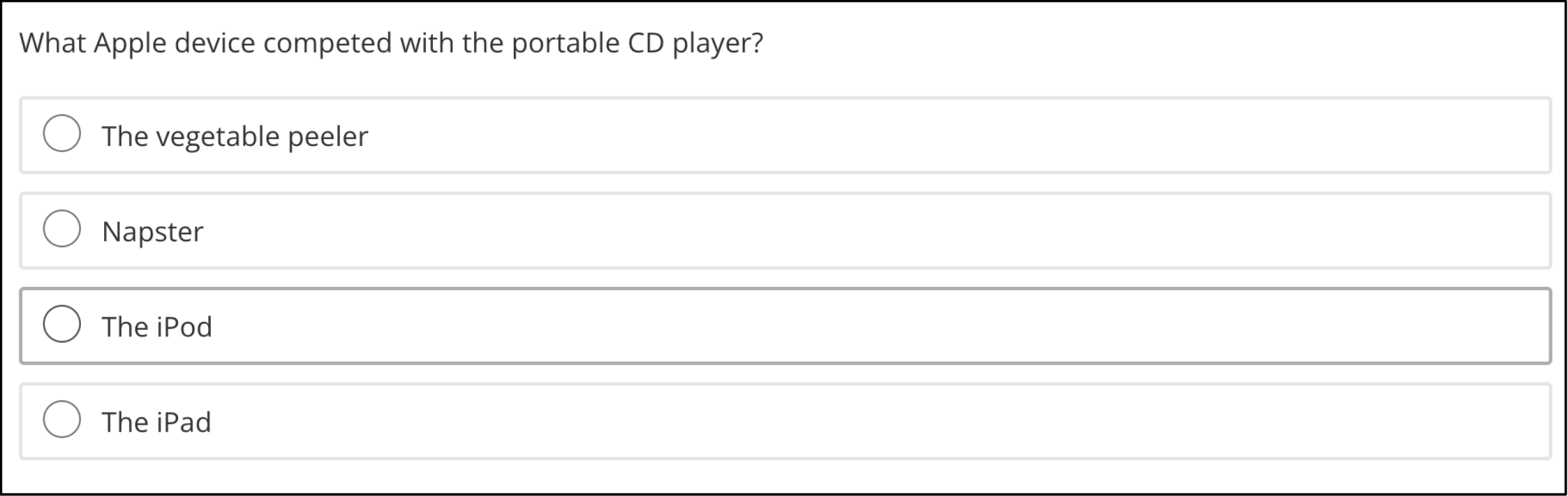 <choice correct="true" explanation-id="iPod">The iPod</choice>
