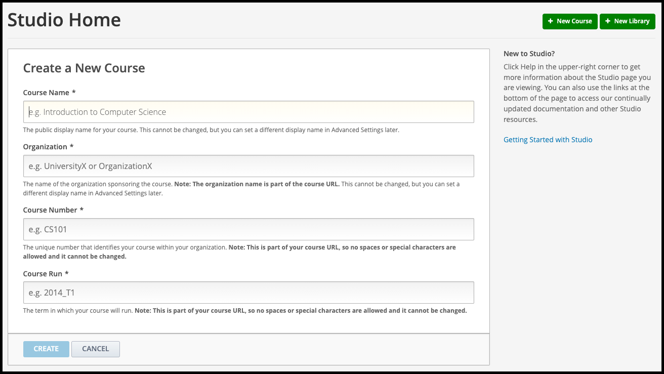 Create a New Course in Studio#