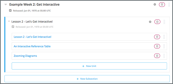 To add a unit to the end of a subsection, expand the subsection and select New Unit. The unit page opens.